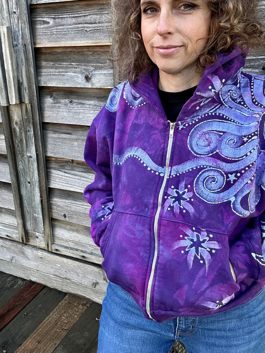 Deep Purple Tree of Life – Handcrafted Batik Zipper Hoodie (Unisex Sizes L & 2X)