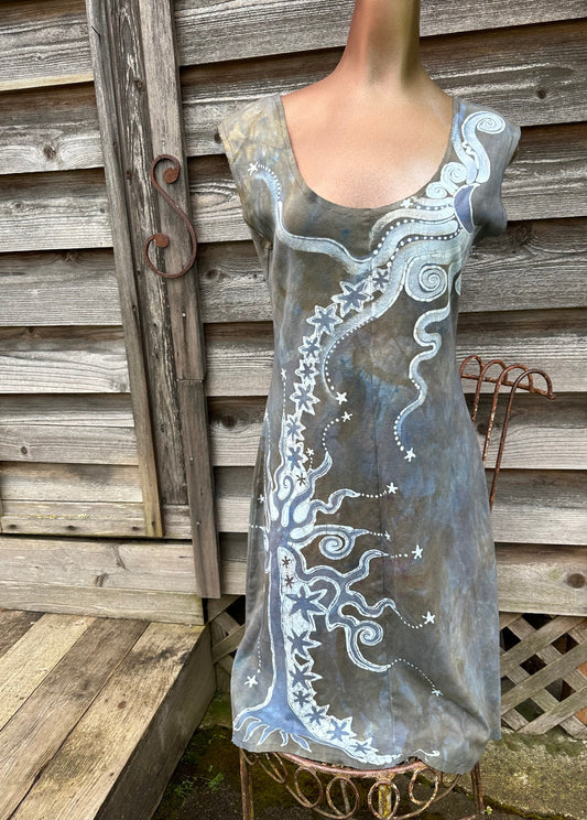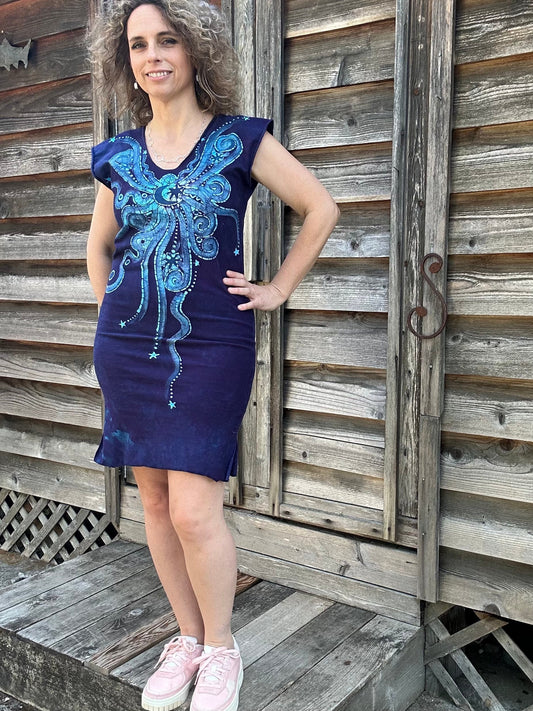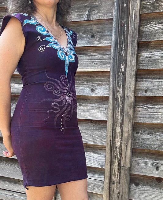 Midnight Moonbeams & Purple Star Glow Handmade Batik Dress