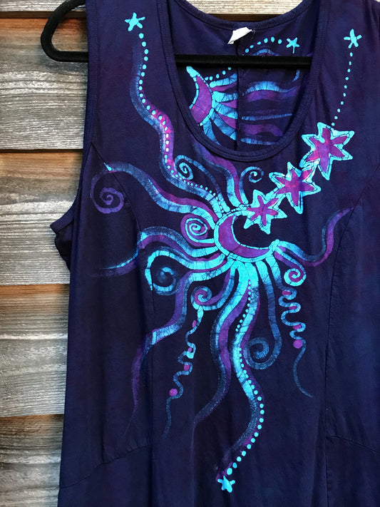 Midnight Moonbeams Batik Long Tank Tunic Dress