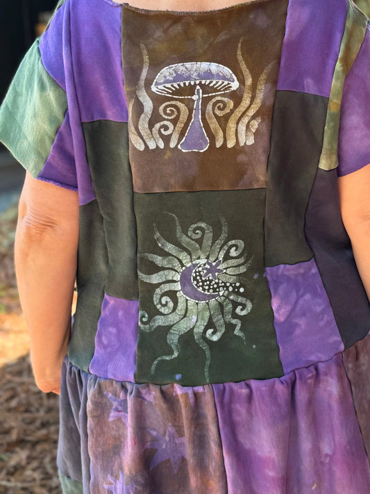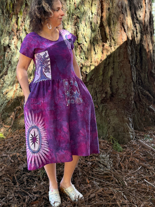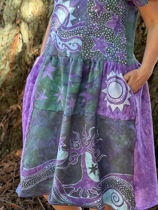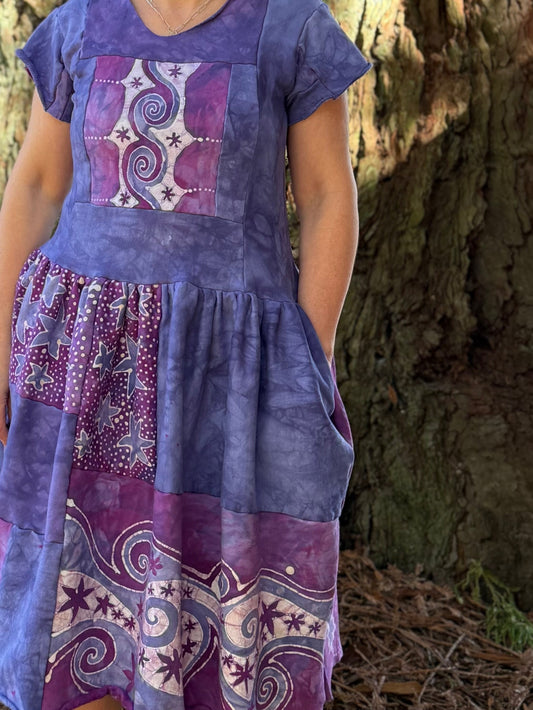 Purple Sunrise and Stars Batik Patchwork Dress