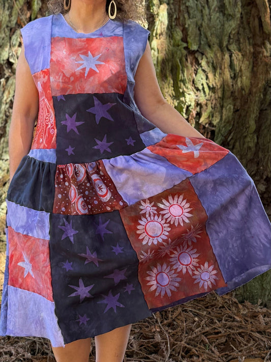 Mulberry Moon & Stars Batik Patchwork Dress
