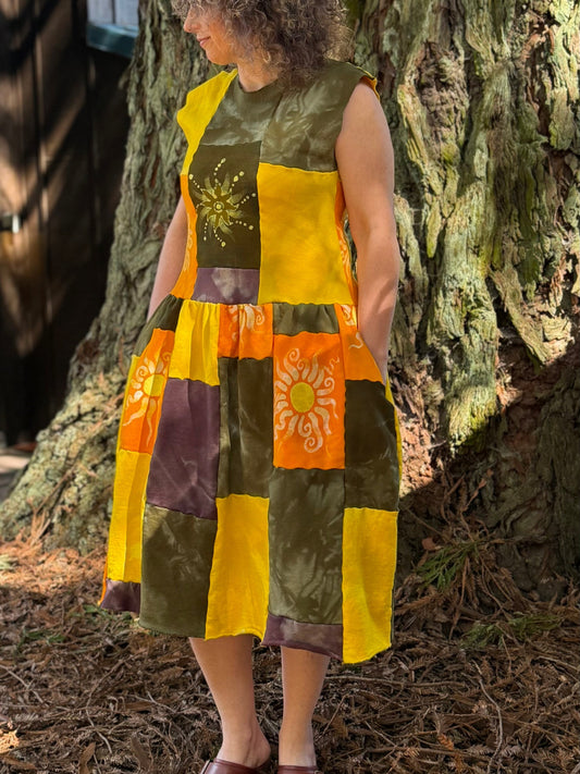 Golden Sun & Earth Batik Patchwork Dress