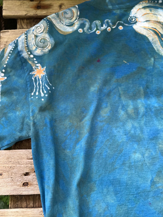 Teal and Purple Cosmic Octopus Hand Painted Batik Tshirt