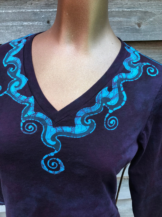 Batik Necklace Tshirt in The Deepest Blue With Purple Highlights - Unisex