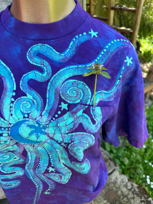 Aurora Borealis Handmade Batik Tshirt with Pocket - Size Large ONLY