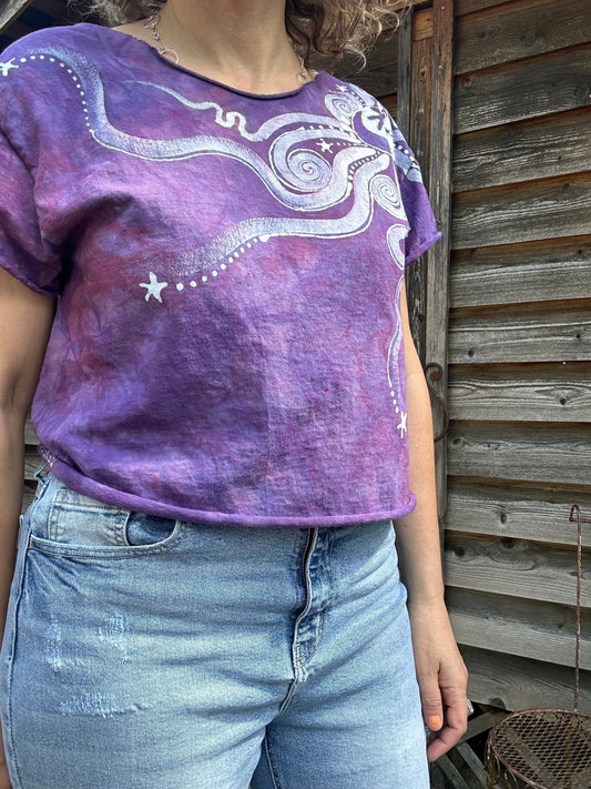 Pretty in Purple Moonbeams – Handmade Batik Cotton Cropped Tee – Size SMALL ONLY