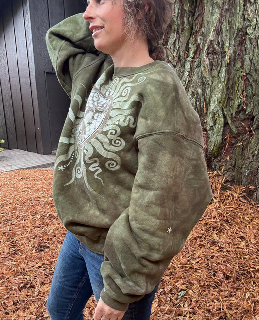 Olive Tree of Life Puffy Batik Crewneck Sweatshirt – Hand-Painted Boho Pullover