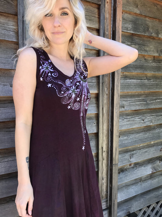 Celestial Flow Batik Tank – Purple Moonlight with Star Trails