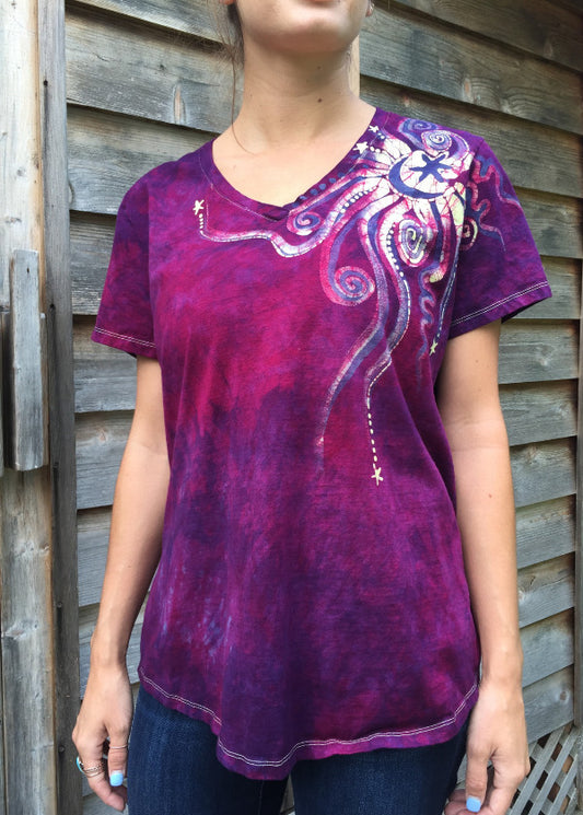 Deep Magenta Moondance Handmade Batik Tee - Plus Size