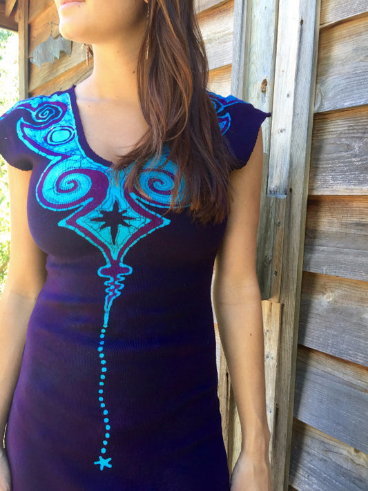 Deep Blue and Purple Sea Of Dreams Organic Cotton Batik Dress - Plus Size