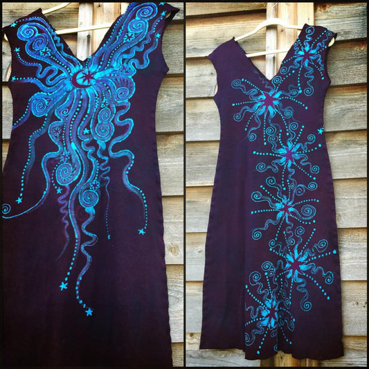Deep Blue and Turquoise Batikwalla Dress in Organic Cotton - Size Small