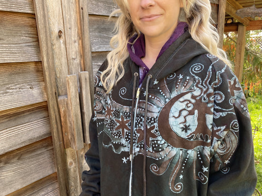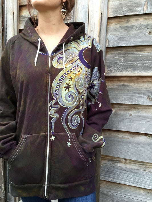 Deepest Gold and Purple Moon Star Organic Cotton Batik Hoodie