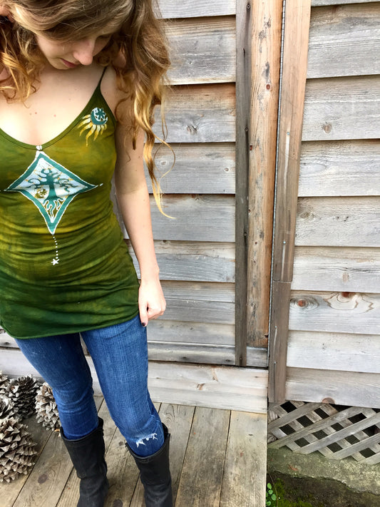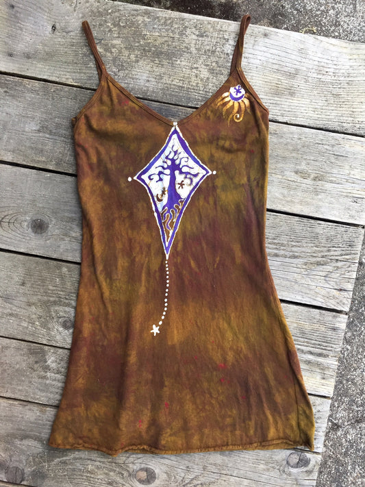 Diamond Tree in Dark Gold Long Summer Batik Camisole