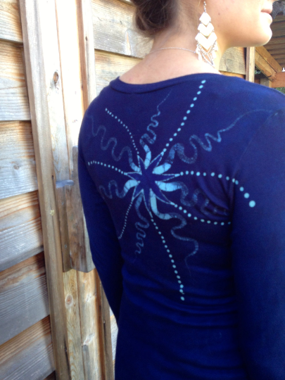 Deepest Blue Moon Star Handmade Batik Vneck Top