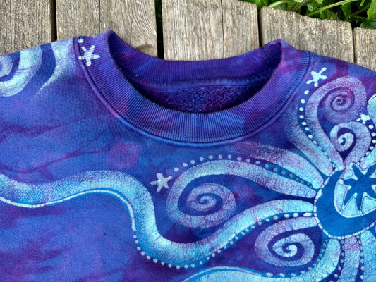 Blue Magenta Moonbeams Puffy Crew Neck Sweatshirt