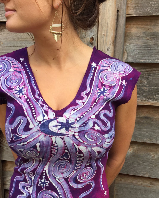 Magenta Moonbeams Organic Cotton Handmade Batik Top - XL