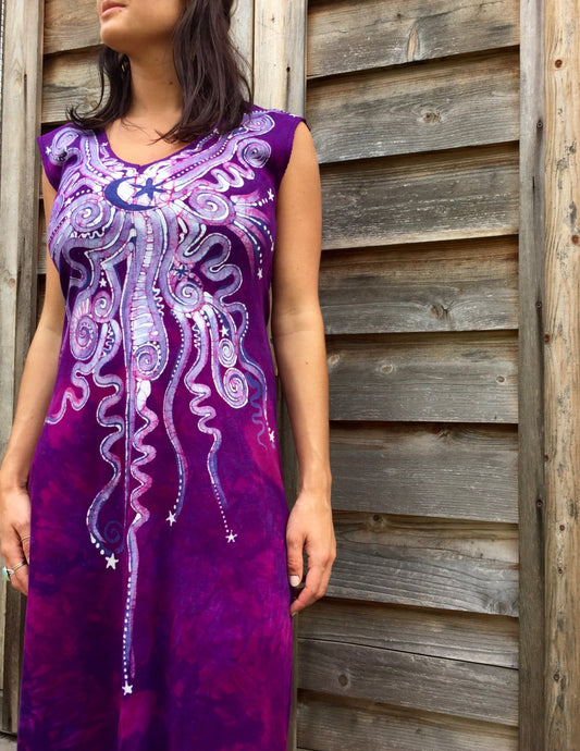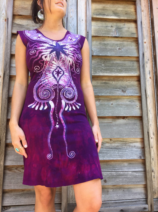 Magenta Moonburst Organic Cotton Batik Dress