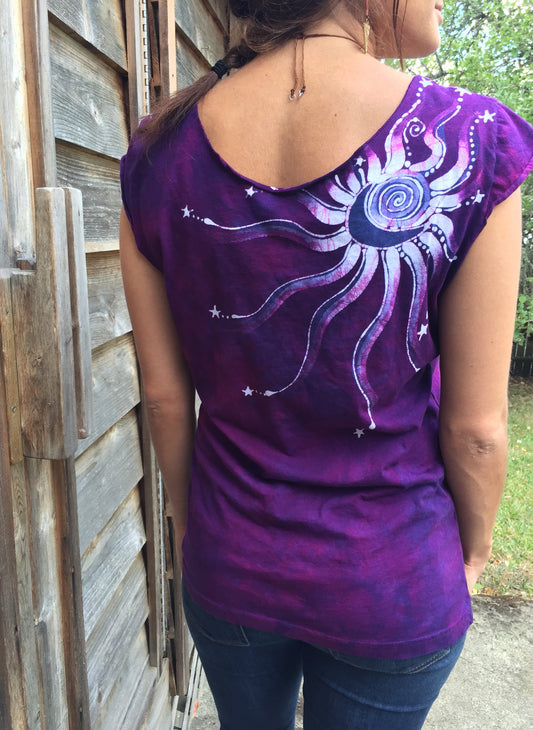 Magenta Moonbeams Organic Cotton Handmade Batik Top - Size XL