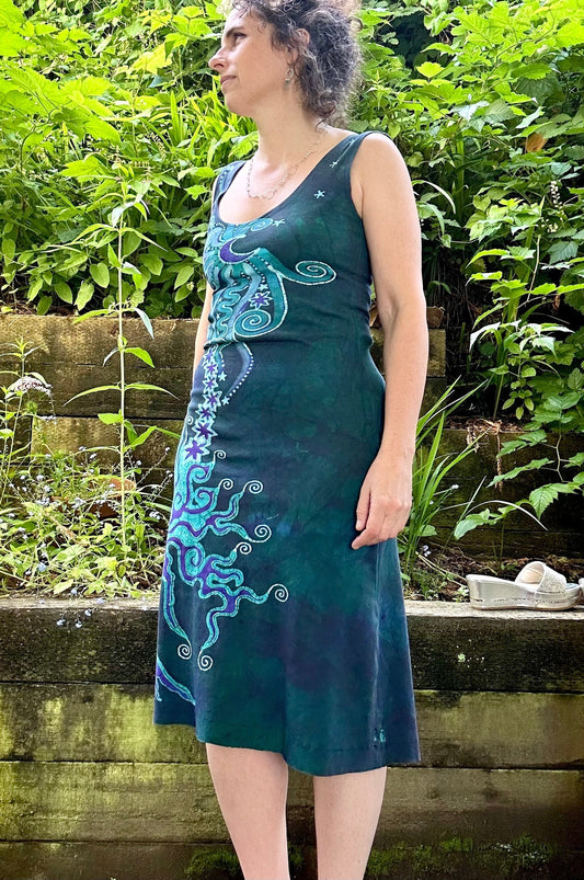 Magnificent Teal Tree Handmade Batik Dress - Size M