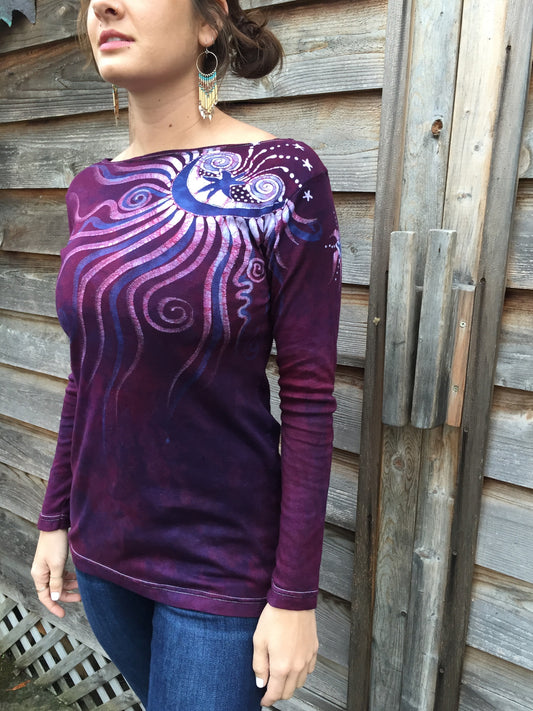 Maroon Shoulder Moon Long Sleeve Batik Top