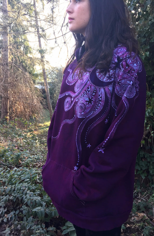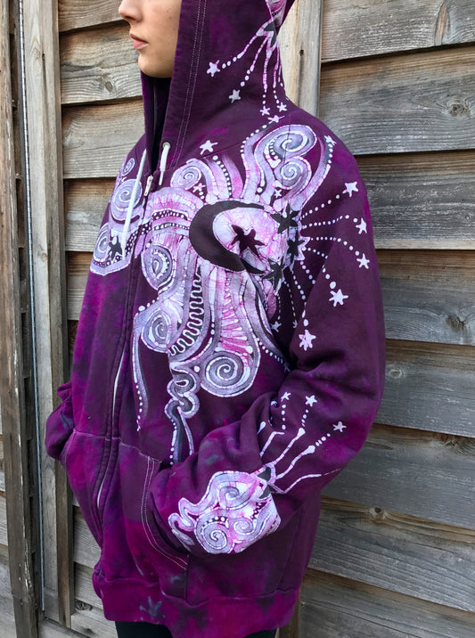Magenta Starshine Handmade Batik Pullover Hoodie