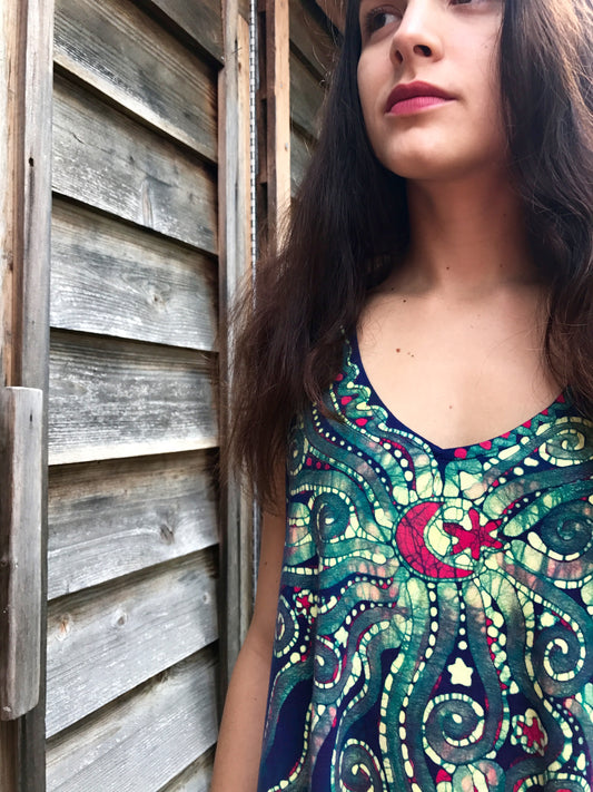 Marooned In Moonlight Red Organic Cotton Batik Dress