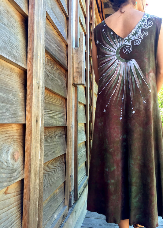 Moonlight Moss Tree of Life Organic Cotton Batik Dress