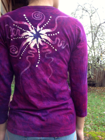 Moonlight Guides Us In Glowing Purple Handmade Batik Tshirt