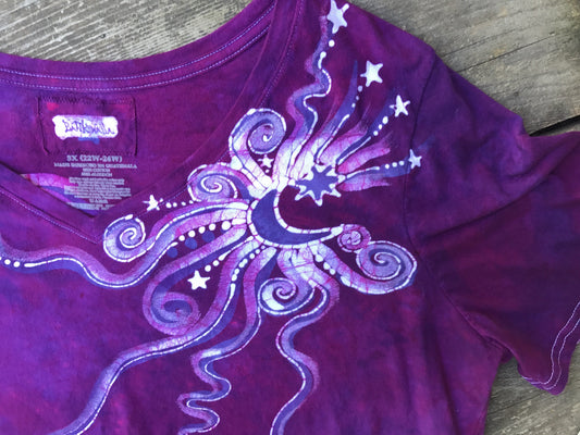 Moonberry Moonbeams Handmade Batik Summer Vneck Tee - Plus Size - 3X