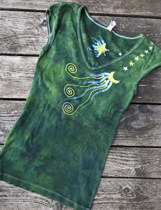 Moonbeams and Mint Stars Batik Vneck Tshirt - Size Small