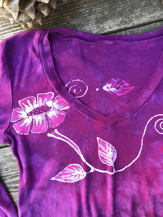 Mulberry Wine - Organic Cotton 4 Panel Batik Top - Handmade