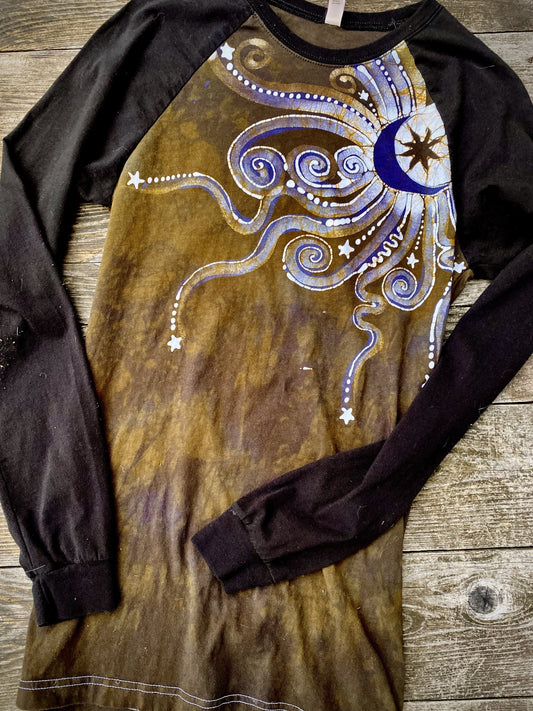 Mustard & Purple Moonbeams Black Raglan Long Sleeve Batik Top by Batikwalla