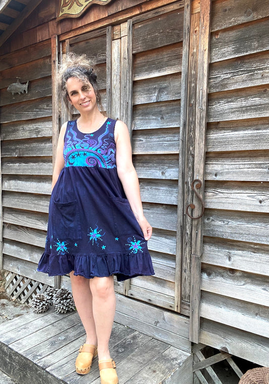 Mystic Moonlight with Turquoise Sunrise - Farmer's Market Pocket Dress - Size Small