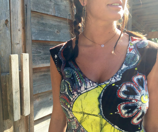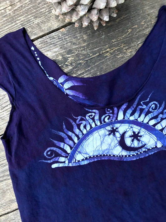 Night Camp Sky - Organic Cotton 4 Panel Batik Top - Handmade Size Large ONLY