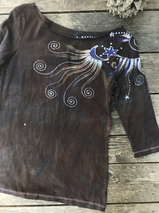 Nightshade Shoulder Swirls Hand Painted Batik Top