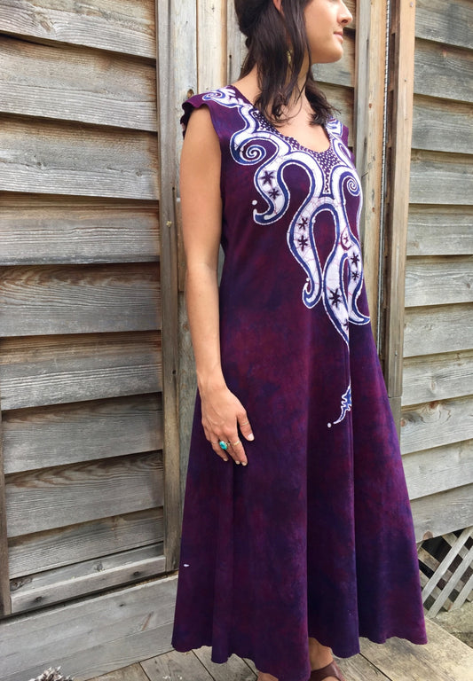 Octopus Tattoo in Deep Maroon Organic Cotton Batik Dress