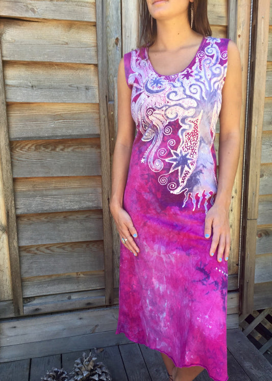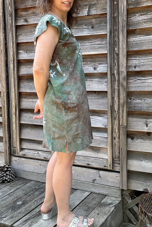 Oregon Moss Organic Cotton Batik Dress Tunic Top - size Large