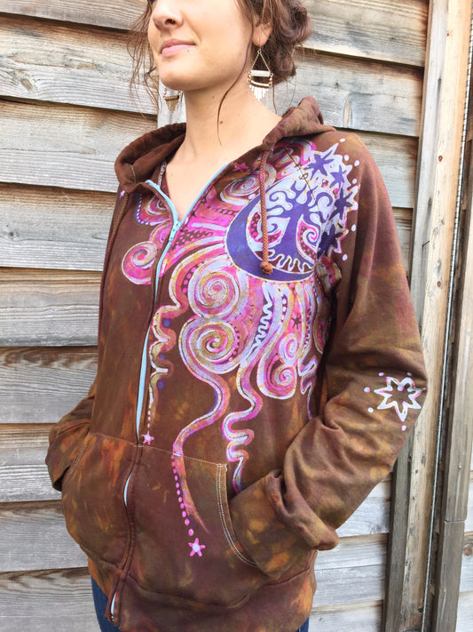 Orangey Pink Moon Tree Handmade Batik Hoodie