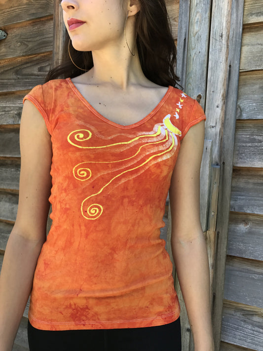 Orange Sherbert Ride Through Space Handmade Batik Summer Tee