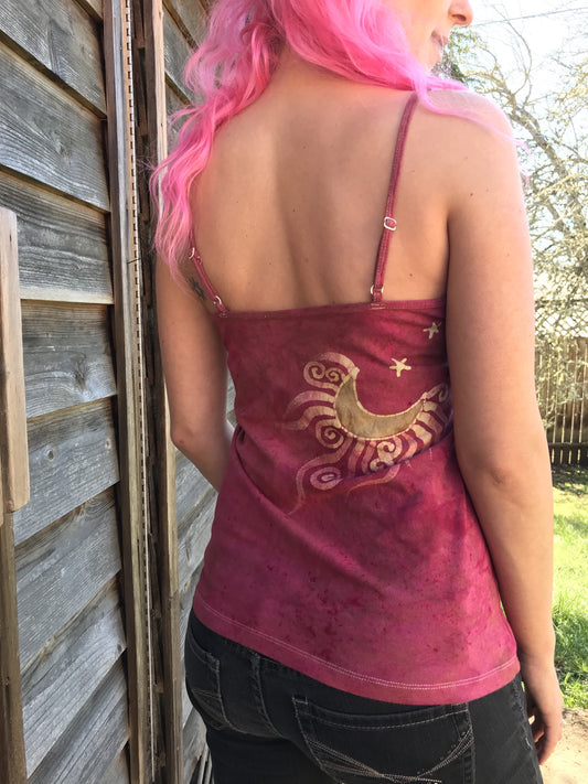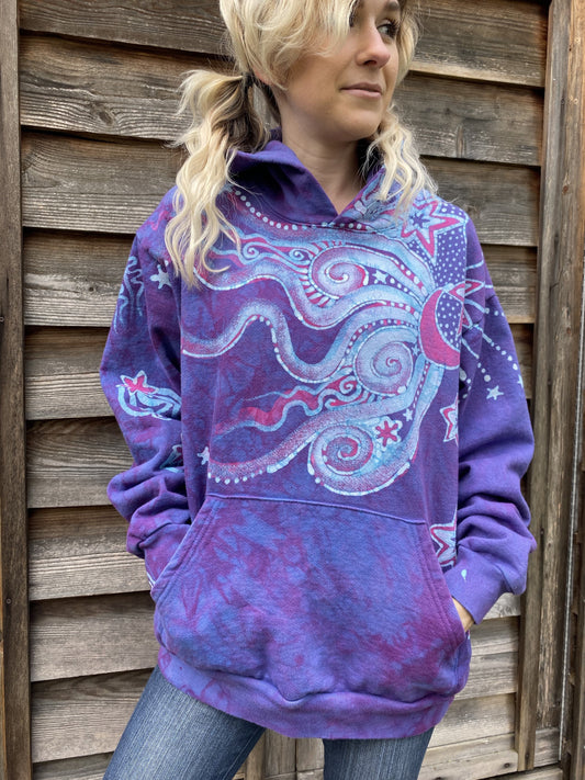 Pretty in Pink Luna Wanderlust Pullover Hoodie - Handcrafted Batik Moons & Stars