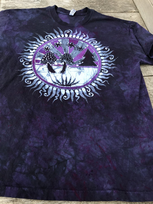 Psychedelic Forest Handmade Batikwalla Tshirt in Purple At Midnight - size XL ONLY