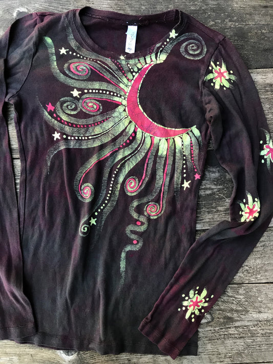 Pretty in Purple Moonbeams – Handmade Batik Cotton Cropped Tee – Size SMALL ONLY