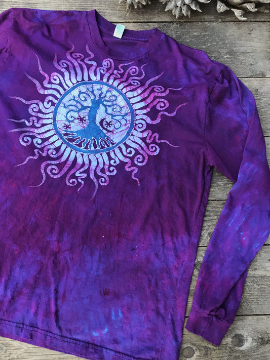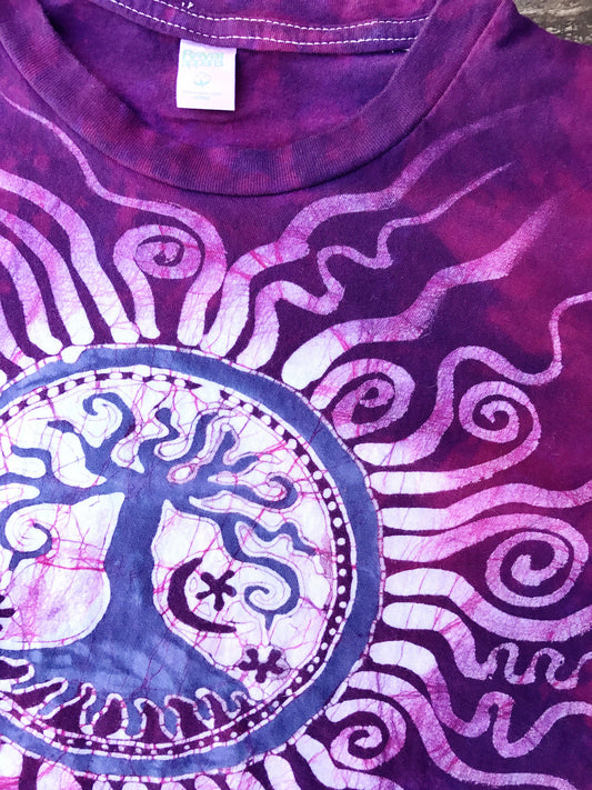 Purple Mandala Tree of Life Black Raglan Quarter Sleeve Batik Top - Size Medium (Unisex)