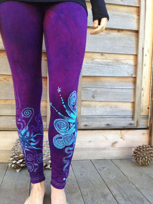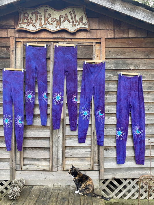 Purple Galaxy Crazy Stars PURE Cotton Batik Leggings - Size SMALL