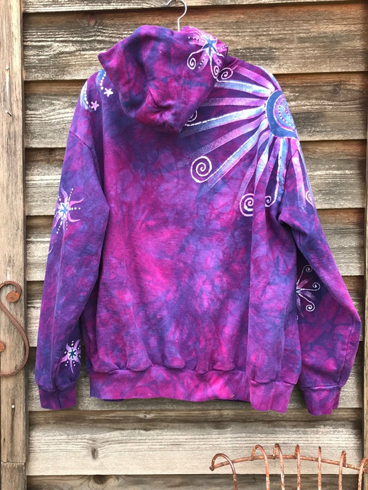 Purple Magenta Moon and Star Handcrafted Batik Zipper Hoodie - Size XL