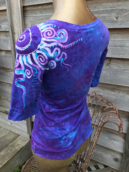 Purple Gold Moonbeams Hand Painted Batikwalla Vneck Tshirt - Unisex Size Small