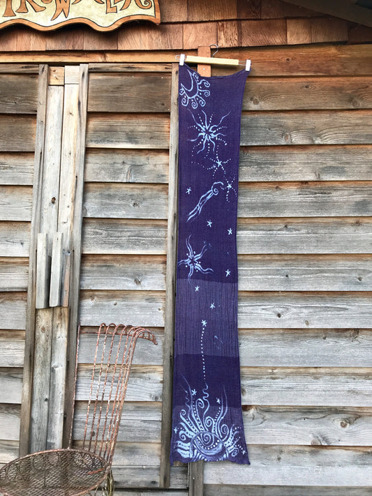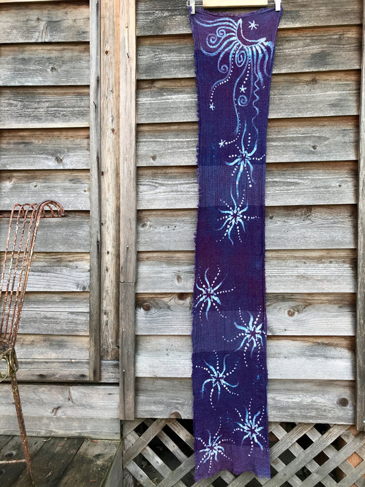 Purple Starseed Moongazer - Hand Painted Organic Cotton Batik Scarf