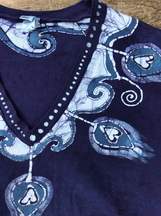 Purple Poppy Flower Power Handmade Batikwalla Vneck Tee - Plus Size 3X