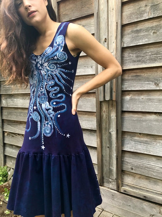 Purple Stars In The Summer Night Batikwalla Dress in Organic Cotton