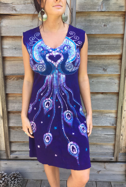 Purple Peacock Lovers Organic Cotton Batik Dress